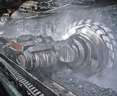 開(kāi)采 內(nèi)蒙古自治區(qū)鄂爾多斯市 布爾臺(tái)煤礦綜采工作面,機(jī)器在開(kāi)足馬力生產(chǎn)。