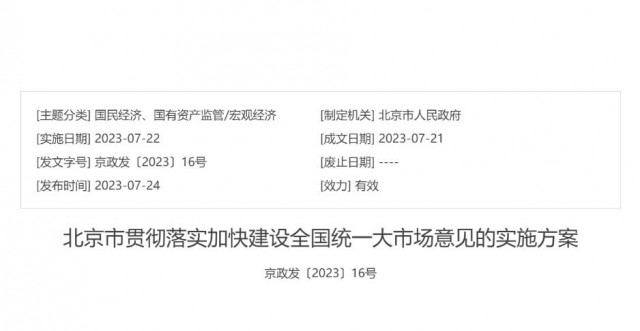《北京市貫徹落實(shí)加快建設(shè)全國(guó)統(tǒng)一大市場(chǎng)意見的實(shí)施方案》全文如下: