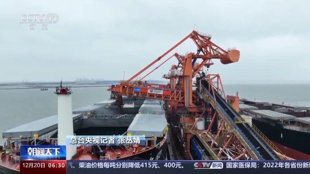 總臺(tái)央視記者 張叢婧:總臺(tái)央視記者 張叢婧:卸完的煤就是通過皮帶運(yùn)到這個(gè)兩公里外的碼頭,它們的目的地是江蘇、浙江等地的電廠。工作人員告訴我,現(xiàn)在港口上的17個(gè)泊位已經(jīng)是全部都停滿了貨船在進(jìn)行裝煤,整個(gè)港已經(jīng)是處于滿負(fù)荷的運(yùn)轉(zhuǎn)狀態(tài)。