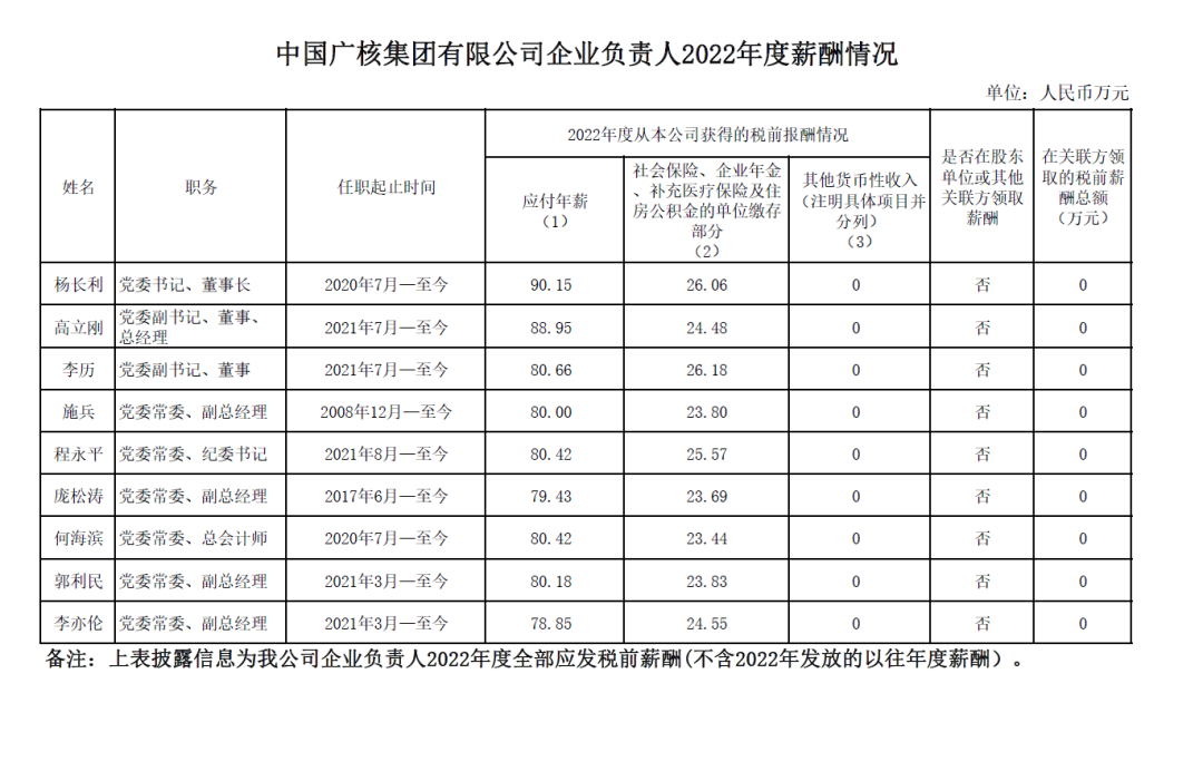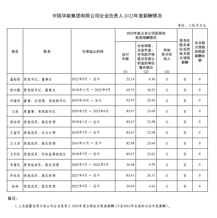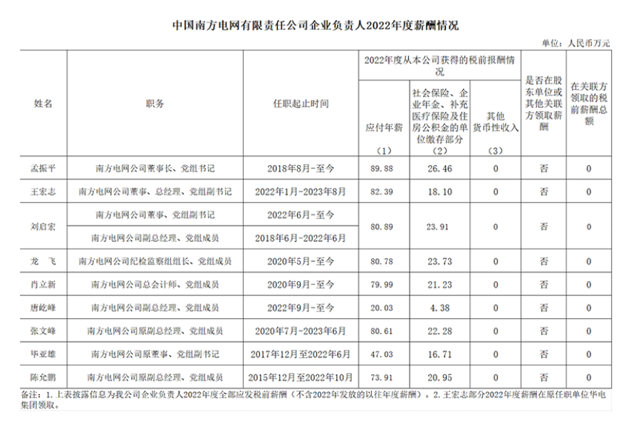 電力央企負(fù)責(zé)人2022年度薪酬披露!以漲為主