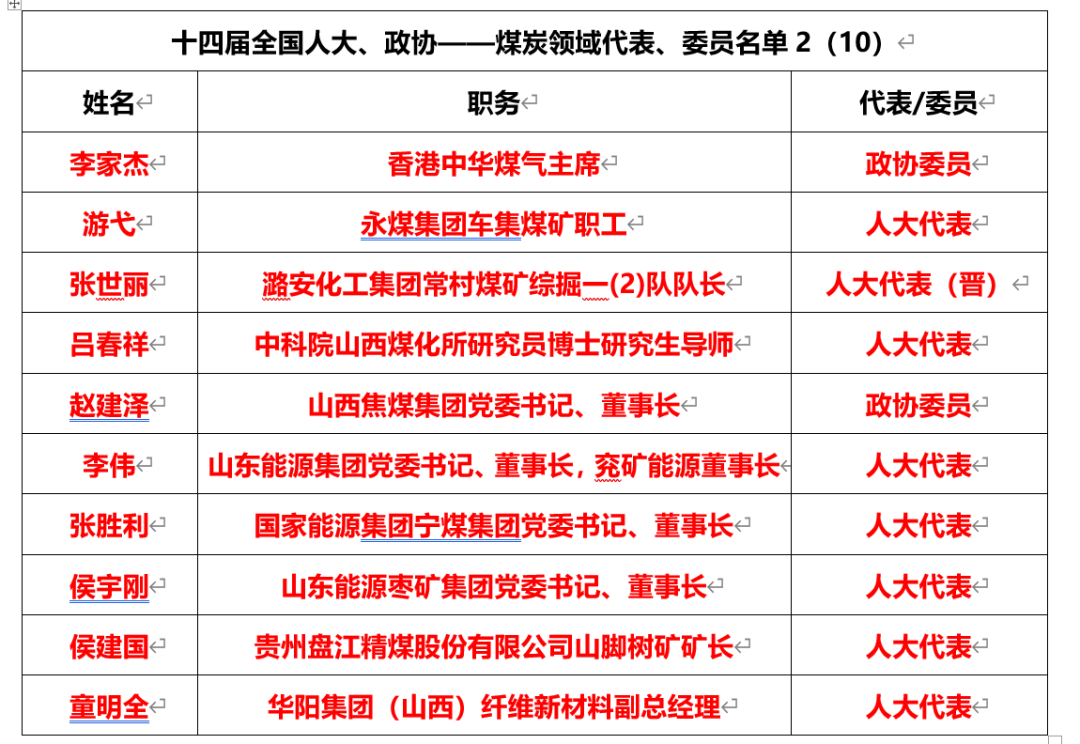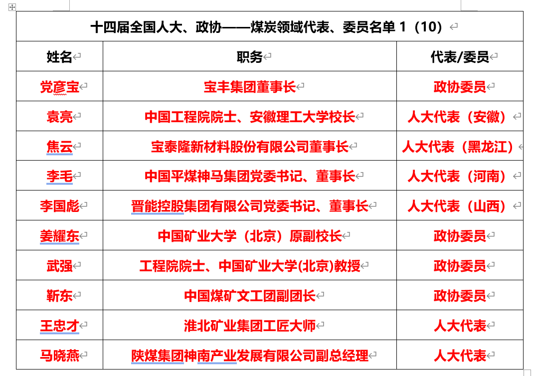 煤炭領(lǐng)域有25人當(dāng)選十四屆全國人大代表、政協(xié)委員,全國人大代表有19名,全國政協(xié)委員有6名。