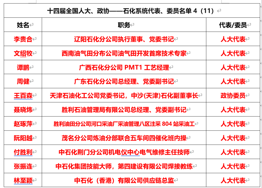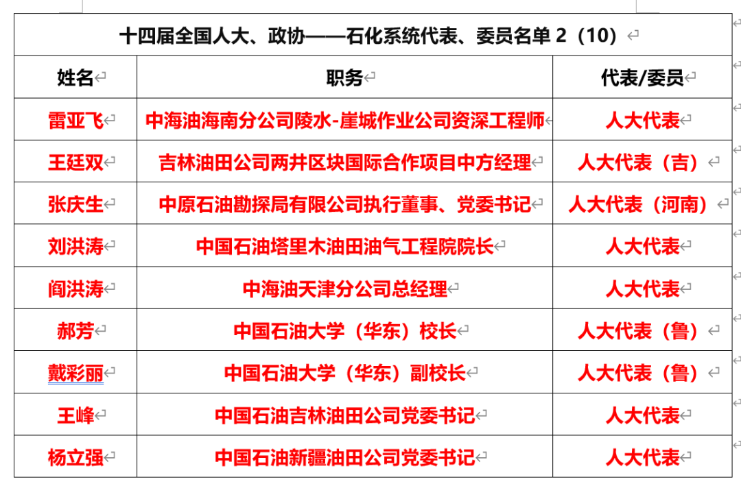 (二)中國石油(15名,委員1,代表14)