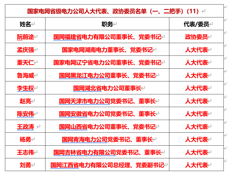 其中,國家電網(wǎng)代表、委員人數(shù)最多,達(dá)到21人,南方電網(wǎng)3人。