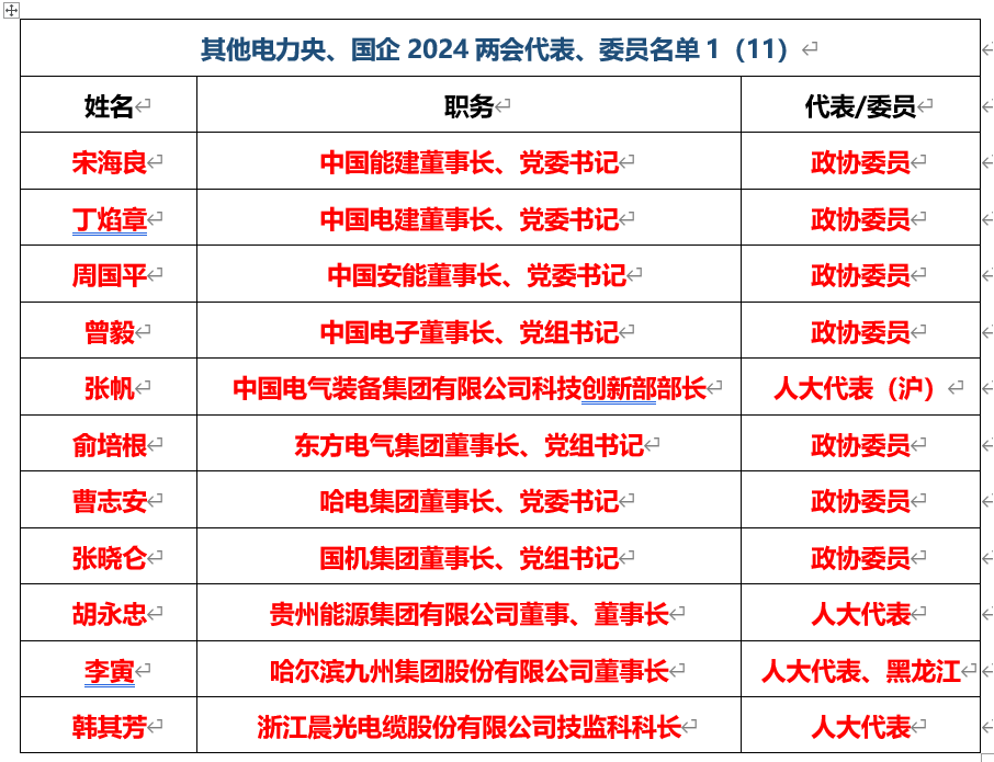 2024年能源、電力領(lǐng)域兩會代表、委員全名單!