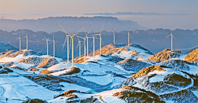 我國持續(xù)推進產(chǎn)業(yè)結(jié)構(gòu)和能源結(jié)構(gòu)調(diào)整,為能源電力綠色低碳轉(zhuǎn)型奠定了堅實基礎。圖為2024年1月24日拍攝的湖北省宜昌市秭歸縣云臺荒風力發(fā)電場。 人民圖片 雷勇/攝