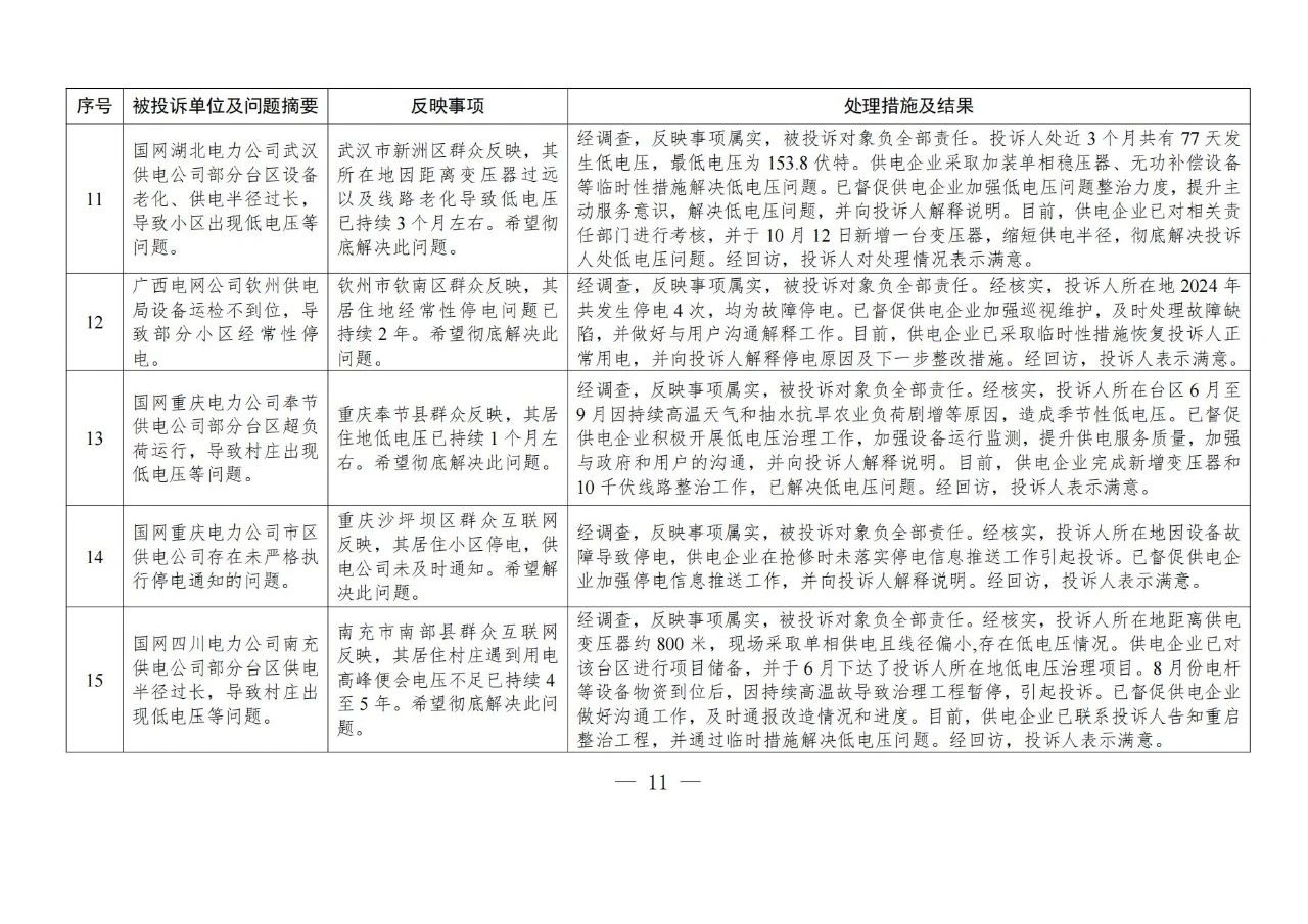 針對(duì)群眾反映的投訴舉報(bào),國(guó)家能源局派出機(jī)構(gòu)嚴(yán)格按照有關(guān)法規(guī)政策規(guī)定進(jìn)行處理。一是督促供電企業(yè)進(jìn)一步規(guī)范用電報(bào)裝管理,強(qiáng)化業(yè)擴(kuò)報(bào)裝全流程管控,嚴(yán)格按照規(guī)定時(shí)限完成裝表接電;二是要求供電企業(yè)加強(qiáng)設(shè)備隱患排查整治,強(qiáng)化停電搶修管理,合理規(guī)劃計(jì)劃停電,增加搶修資源投入,提升設(shè)備管控和停電搶修能力,切實(shí)提高供電可靠性;三是通過(guò)行政處罰、監(jiān)管約談、責(zé)令整改等方式,糾正有關(guān)企業(yè)違法違規(guī)行為,維護(hù)公平公正的市場(chǎng)秩序和群眾合法權(quán)益;四是通過(guò)解釋說(shuō)明、澄清事實(shí),消除群眾誤解。(2024年11月12398熱線(xiàn)典型投訴舉報(bào)事項(xiàng)具體處理情況見(jiàn)附件2)