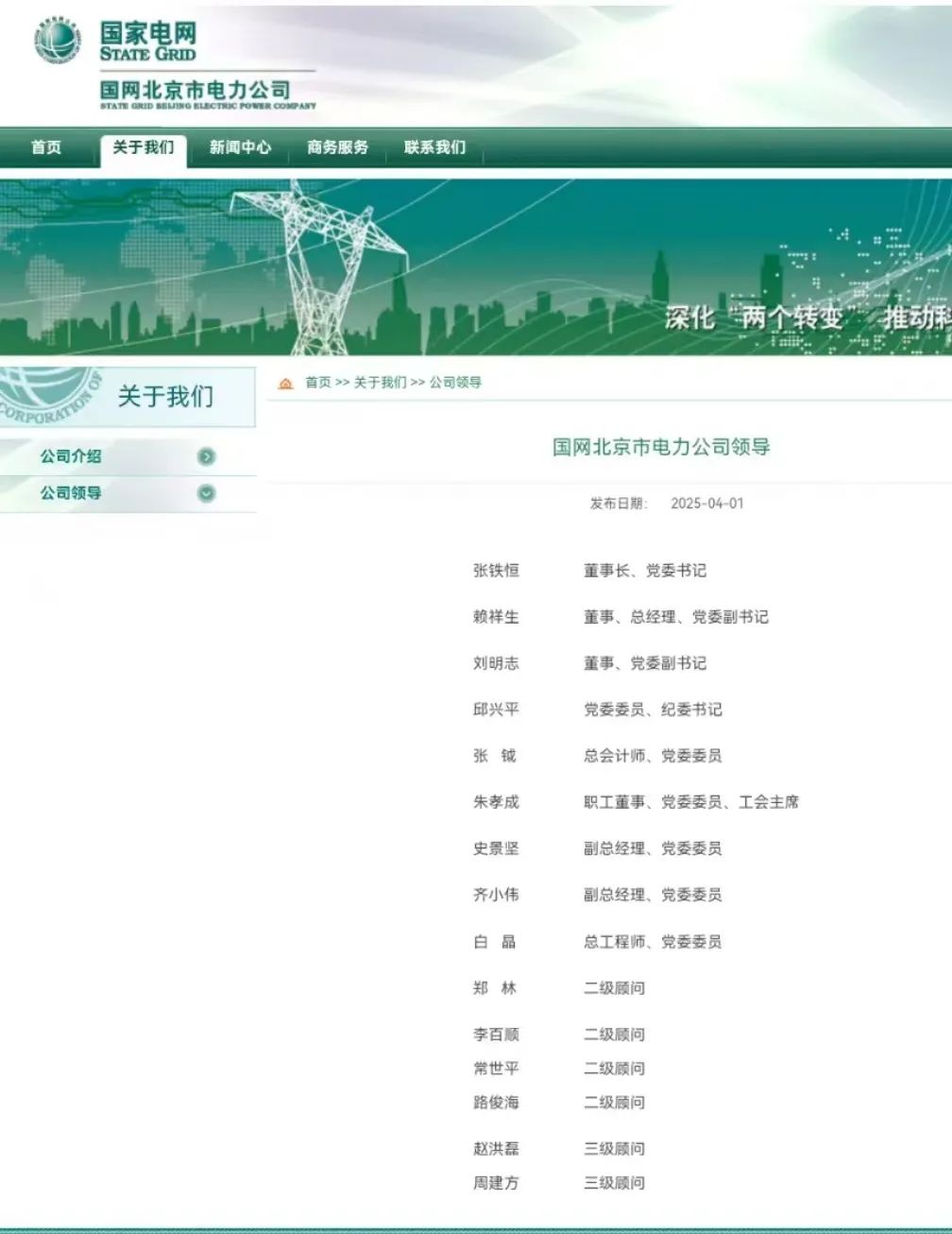 劉明志任國網(wǎng)北京市電力公司董事、黨委副書記,調(diào)整前為副總經(jīng)理,黨委委員。