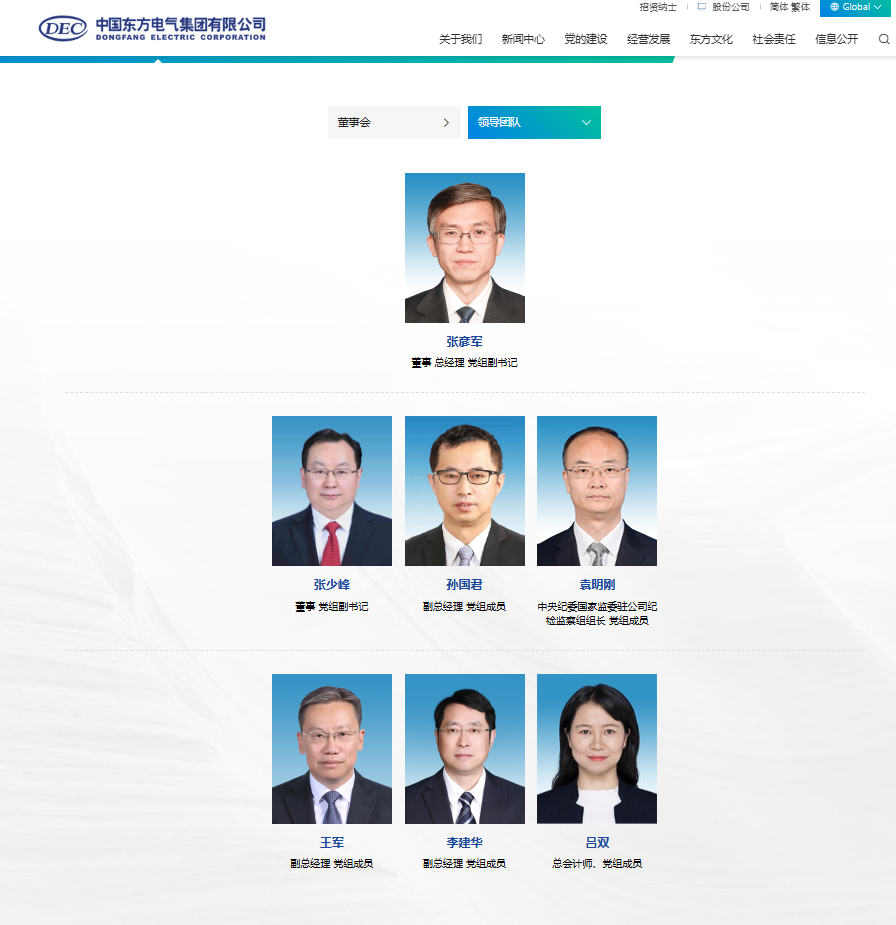 中國東方電氣集團有限公司官網(wǎng)領導團隊信息出現(xiàn)變動,董事長、黨組書記俞培根的相關信息已被撤下,不在領導團隊之列。目前在該欄目排位第一的,是該公司董事、總經理、黨組副書記張彥軍。