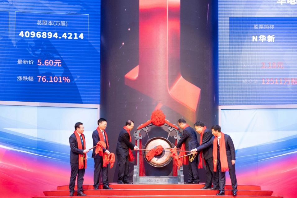 伴隨著響亮的鑼聲,中國華電集團有限公司旗下新能源旗艦平臺——華電新能源集團股份有限公司(股票簡稱:華電新能,股票代碼:600930)今日正式登陸上海證券交易所主板,標志著這家國內(nèi)規(guī)模最大的新能源發(fā)電企業(yè)成功駛?cè)胭Y本市場的廣闊藍海,開啟了以資本賦能綠色發(fā)展的嶄新征程。掛牌上市當日開盤價5.5元/股,收盤價7.18元/股,漲幅125.79%,上市首日市值近3000億元,成為A股市值最高的新能源發(fā)電行業(yè)上市公司。