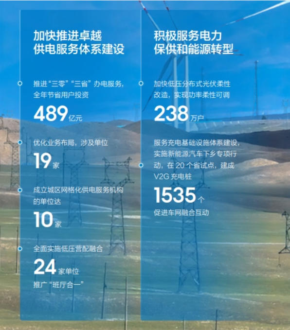 農(nóng)網(wǎng)鞏固提升工程投資1600億元,農(nóng)網(wǎng)電壓合格率99.831%,農(nóng)網(wǎng)供電可靠率99.915%;捐贈幫扶項目預(yù)計年產(chǎn)值4765萬元,帶動群眾就近就業(yè)2100余人;投入無償幫扶資金1.1億元。