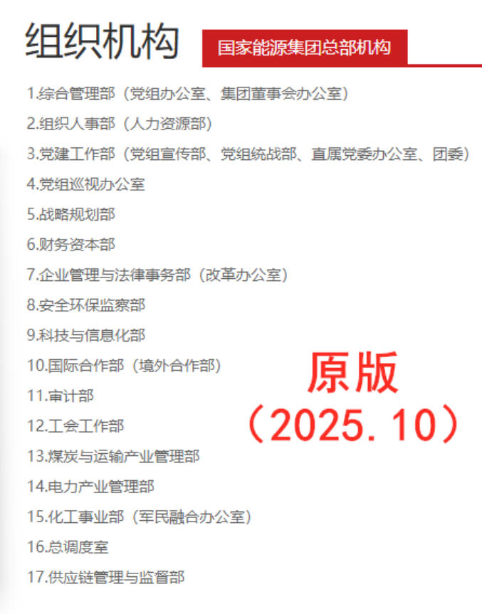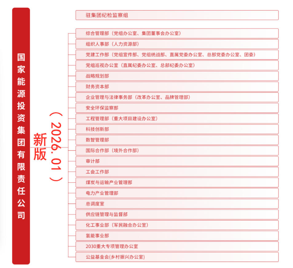 日前,國家能源集團(tuán)官網(wǎng)改版并更新“組織架構(gòu)”信息。