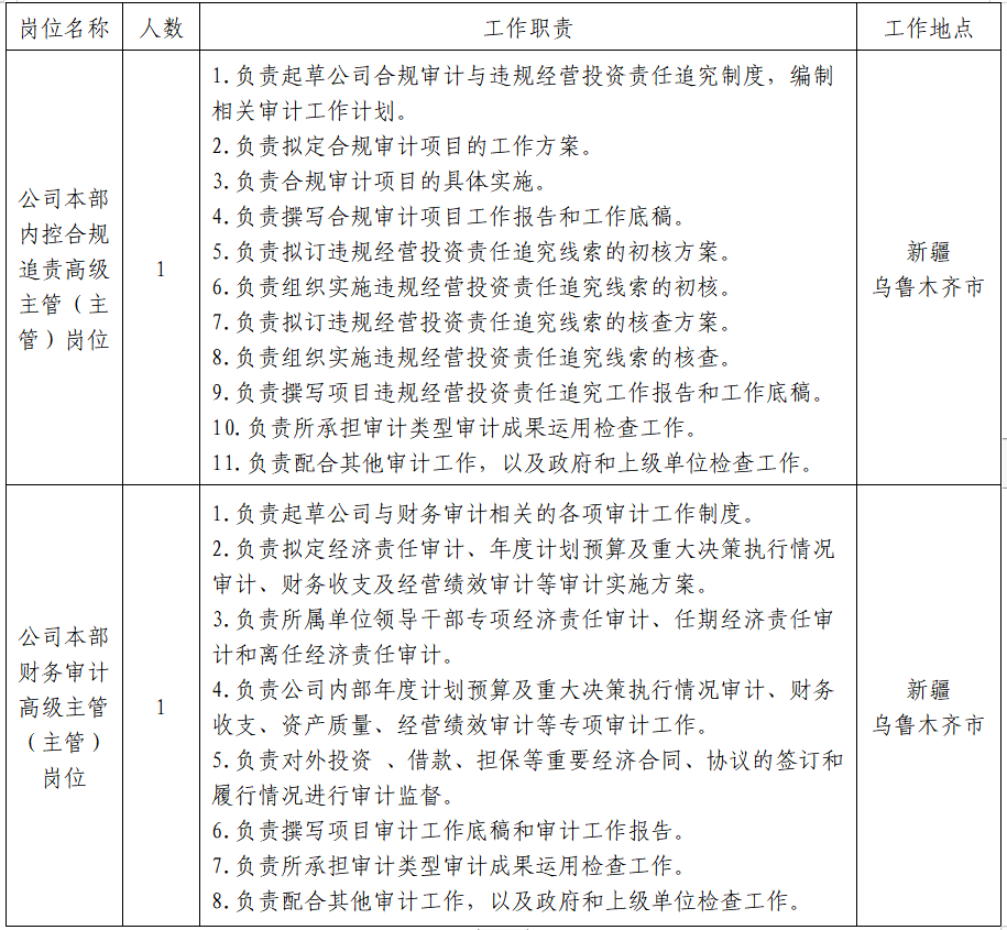 4.具有5年及以上工作經(jīng)驗,其中3年及以上審計、內(nèi)控合規(guī)、法務(wù)工作經(jīng)驗,從事過違規(guī)經(jīng)營投資責任追究工作的優(yōu)先。