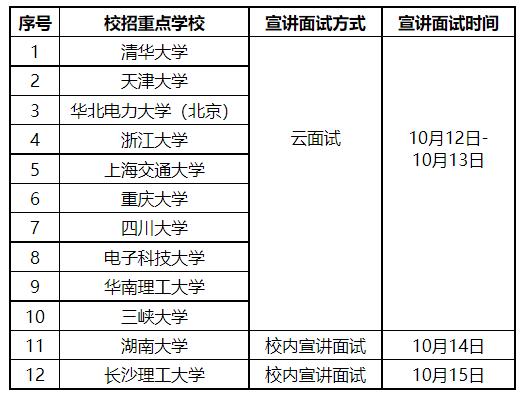 因疫情影響,國網(wǎng)湖南電力2023年校園招聘長沙站采取“校內宣講面試”,省外其他重點院校采取“云面試”方式開展,宣講面試安排如下(招聘單位及招聘條件詳見前期發(fā)布的招聘公告):