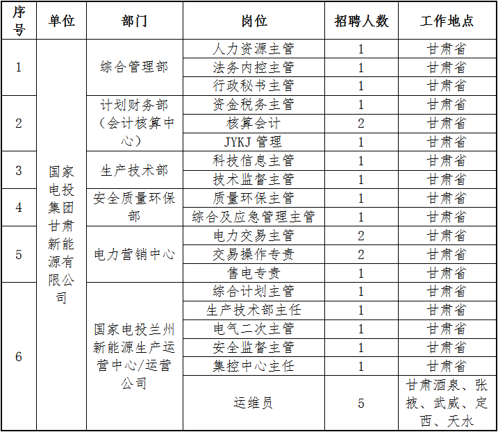 國(guó)家電投集團(tuán)甘肅新能源有限公司(簡(jiǎn)稱(chēng):國(guó)家電投甘肅新能源公司)成立于2016年,是國(guó)家電力投資集團(tuán)有限公司(簡(jiǎn)稱(chēng):國(guó)家電投)在甘肅地區(qū)設(shè)立的新能源投資、開(kāi)發(fā)、建設(shè)和運(yùn)營(yíng)企業(yè),與國(guó)家電投甘肅分公司一體化運(yùn)作。國(guó)家電投甘肅分公司為國(guó)家電投二級(jí)單位,主要承擔(dān)所在地區(qū)區(qū)域規(guī)劃、政府對(duì)接、市場(chǎng)開(kāi)發(fā)、電力營(yíng)銷(xiāo)、品牌建設(shè)等工作。
