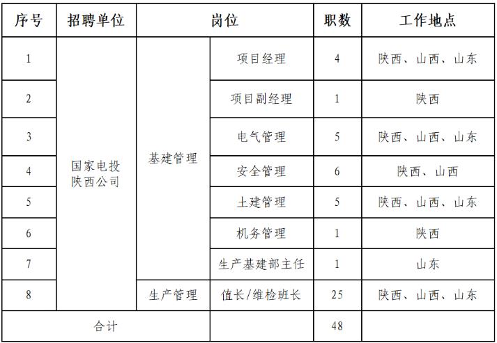 根據(jù)國(guó)家電投陜西公司發(fā)展需要,現(xiàn)面向集團(tuán)公司系統(tǒng)內(nèi)外進(jìn)行招聘。具體事項(xiàng)公告如下: