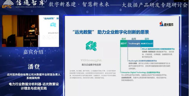 經(jīng)過多年積累,遠光軟件推出了“遠光數(shù)聚”智能大數(shù)據(jù)一站式服務(wù)平臺,并以技術(shù)、數(shù)據(jù)、應(yīng)用服務(wù)化為產(chǎn)品動因,研發(fā)系列產(chǎn)品,如企業(yè)數(shù)字化創(chuàng)新應(yīng)用平臺Realinsight、能源大數(shù)據(jù)服務(wù)平臺BDaaS等,致力于幫助企業(yè)實現(xiàn)數(shù)字化管理和創(chuàng)新。潘登向嘉賓們詳細介紹了“遠光數(shù)聚”的設(shè)計理念,以及為電力行業(yè)提供高效、精準數(shù)據(jù)分析的應(yīng)用實踐。