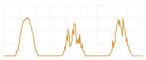 圖2為海外某200MW電站三天的實(shí)際發(fā)電曲線(xiàn),電站采用1.42倍容配比+跟蹤系統(tǒng)設(shè)計(jì)。電站逆變器從早上8點(diǎn)到下午5點(diǎn)一直處于滿(mǎn)功率運(yùn)行狀態(tài),相較于圖1,該電站發(fā)電曲線(xiàn)幾乎呈平直狀態(tài),即使光照出現(xiàn)一定程度的波動(dòng),逆變器輸出功率也只是出現(xiàn)微小變化,整個(gè)電站的輸出更加穩(wěn)定。