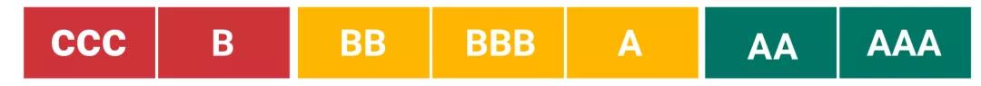 MSCI根據(jù)從公開(kāi)渠道收集到的ESG數(shù)據(jù),對(duì)被評(píng)公司ESG績(jī)效和管理水平打分?;谕袠I(yè)表現(xiàn)對(duì)比,被評(píng)公司的ESG得分會(huì)按照一定標(biāo)準(zhǔn)對(duì)應(yīng)到CCC、B、BB、BBB、A、AA、AAA七個(gè)等級(jí)。