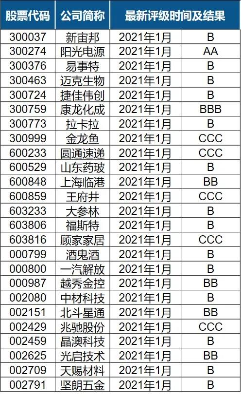 - 在評(píng)級(jí)被調(diào)高的3家公司中,復(fù)星醫(yī)藥(600196)由BB級(jí)提高為BBB級(jí)、新能泰山(000720)由B級(jí)提高為BB級(jí)、工業(yè)富聯(lián)(601138)由CCC級(jí)提高為B級(jí);