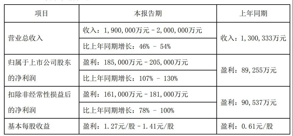 圖:陽(yáng)光電源2020年業(yè)績(jī)預(yù)告情況表