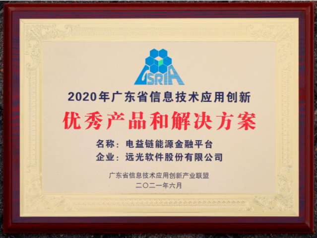 近日,遠(yuǎn)光軟件基于區(qū)塊鏈技術(shù)研發(fā)的“電益鏈能源金融平臺”榮獲廣東省信息技術(shù)應(yīng)用創(chuàng)新產(chǎn)業(yè)聯(lián)盟頒發(fā)的“2020年廣東省信息技術(shù)應(yīng)用創(chuàng)新優(yōu)秀產(chǎn)品和解決方案”獎,再次彰顯了公司在新技術(shù)應(yīng)用領(lǐng)域的創(chuàng)新能力。