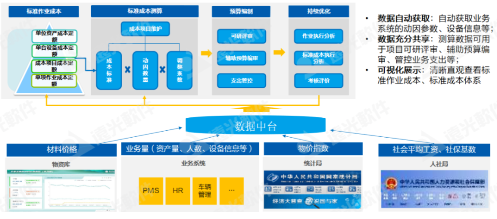 遠(yuǎn)光軟件全面預(yù)算管理通過(guò)打造涵蓋各板塊、各業(yè)務(wù)的企業(yè)級(jí)成本標(biāo)準(zhǔn)庫(kù),輔助企業(yè)預(yù)算編制,提高企業(yè)預(yù)算編制的準(zhǔn)確性及公平性,并通過(guò)連接統(tǒng)計(jì)局、物價(jià)局相關(guān)數(shù)據(jù)指標(biāo),快速采集和更新動(dòng)因數(shù)據(jù),實(shí)現(xiàn)標(biāo)準(zhǔn)成本的動(dòng)態(tài)修編,提高標(biāo)準(zhǔn)成本體系的適用性、精準(zhǔn)性。