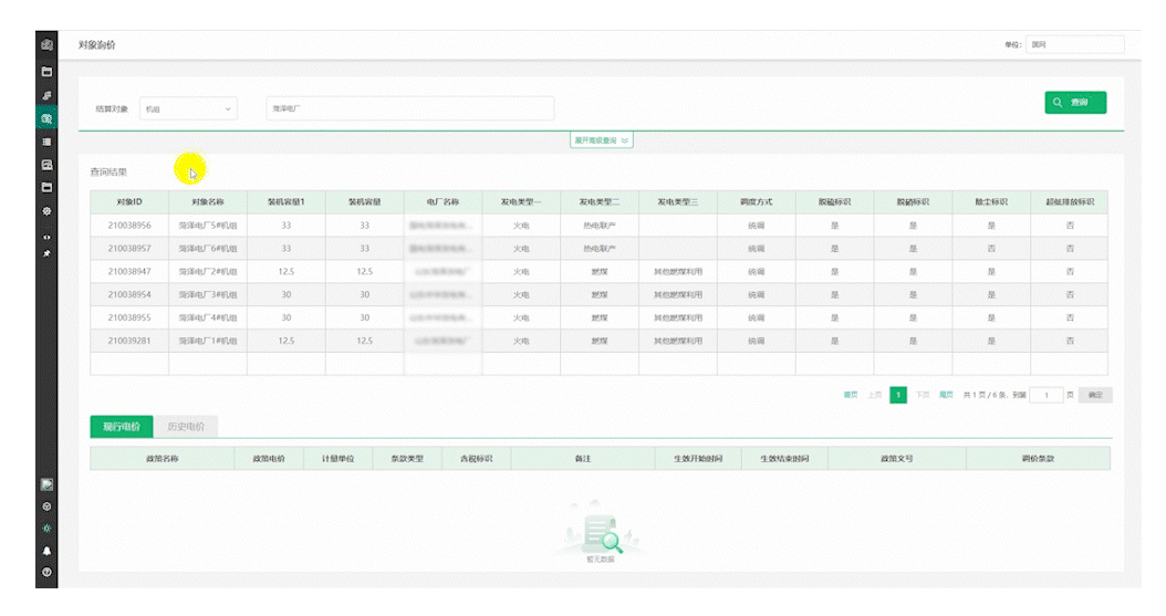 按結(jié)算對(duì)象類(lèi)型分類(lèi)查找,實(shí)現(xiàn)快速獲取具體結(jié)算對(duì)象的現(xiàn)行政策電價(jià)及歷史政策電價(jià),與電費(fèi)結(jié)算的執(zhí)行電價(jià)進(jìn)行稽核對(duì)比,降低電價(jià)執(zhí)行風(fēng)險(xiǎn)。