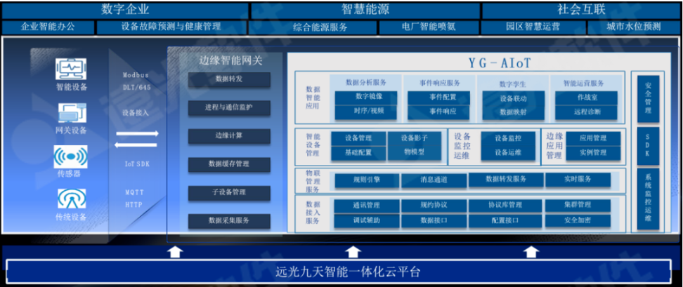 遠(yuǎn)光智能物聯(lián)平臺(tái)(YG-AIoT)是遠(yuǎn)光軟件基于“云、邊、端”一體化協(xié)同理念,創(chuàng)新推出的新一代智能物聯(lián)平臺(tái),能為設(shè)備廠商、方案服務(wù)商、應(yīng)用開發(fā)商提供設(shè)備智能化、連接智能化、數(shù)據(jù)智能化、運(yùn)維智能化的服務(wù)能力,滿足各類物聯(lián)網(wǎng)場(chǎng)景應(yīng)用需求,可有效支撐低碳智慧園區(qū)建設(shè),實(shí)現(xiàn)園區(qū)設(shè)施智慧管理。