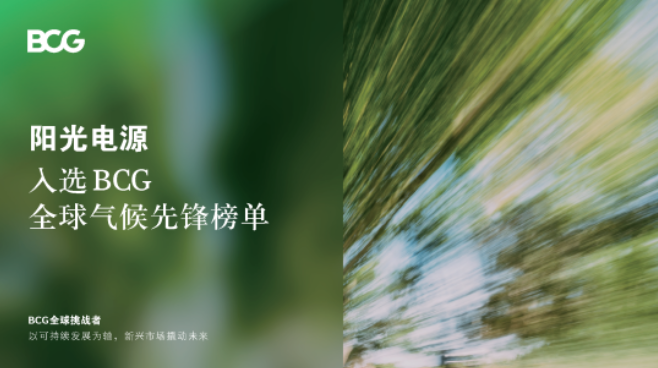 今天是第50個世界環(huán)境日。波士頓咨詢BCG傳來消息:陽光電源獲評“全球氣候先鋒”。