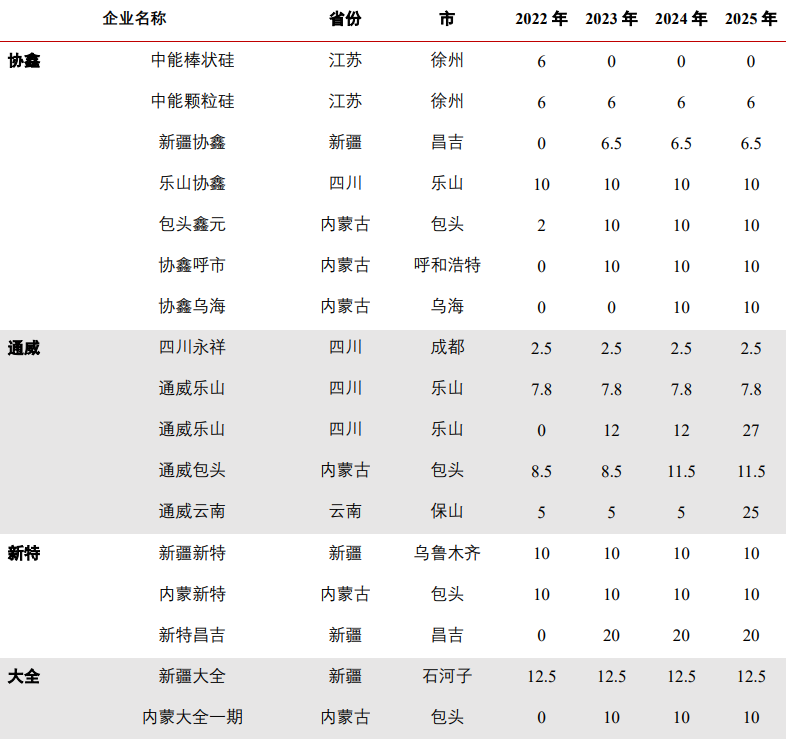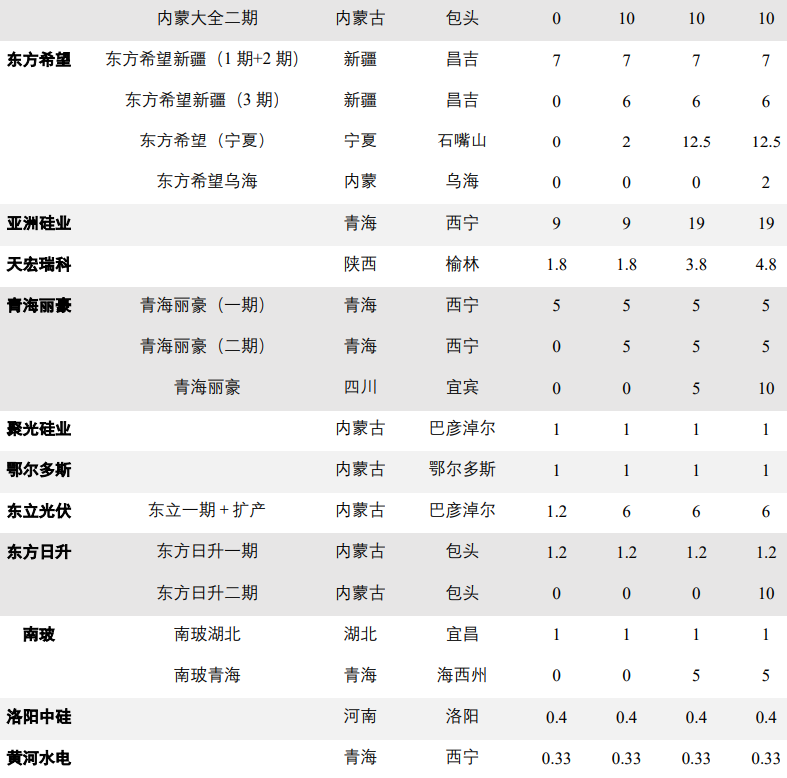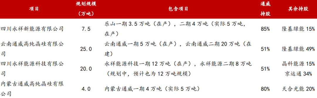 通威股份硅料產(chǎn)能合作情況;來(lái)源:公司公告