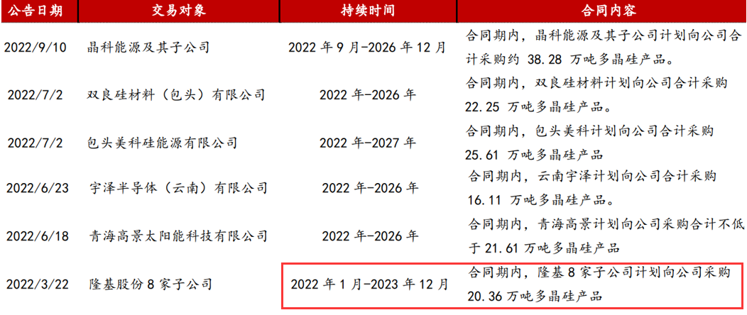 通威股份部分長(zhǎng)單;來(lái)源:公司公告