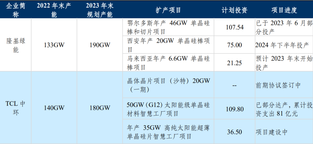 硅片雙龍頭擴(kuò)產(chǎn)情況;來(lái)源:公司公告