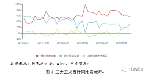 同時,從消費、投資和國外三大需求累計同比對GDP貢獻率看,消費對經濟增長的貢獻率逐步成為中流砥柱,而投資形成貢獻率趨于穩(wěn)定。