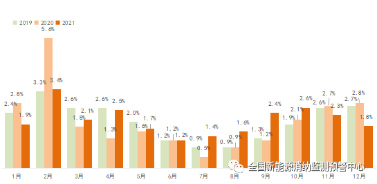 2021年全國棄風率逐月變化情況