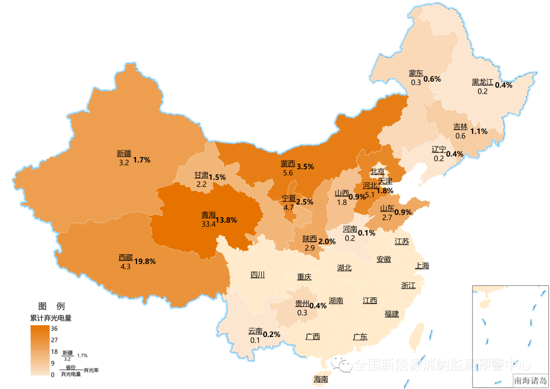 各地區(qū)2021年累計棄光電量(億千瓦時)及棄光率