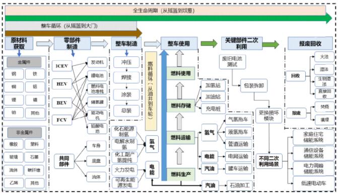 在這種評(píng)估思路下,汽車(chē)原材料的獲取、制造裝配、運(yùn)行使用、關(guān)鍵部件二次利用直至報(bào)廢回收過(guò)程中所產(chǎn)生的碳排放都應(yīng)該考慮在內(nèi)。