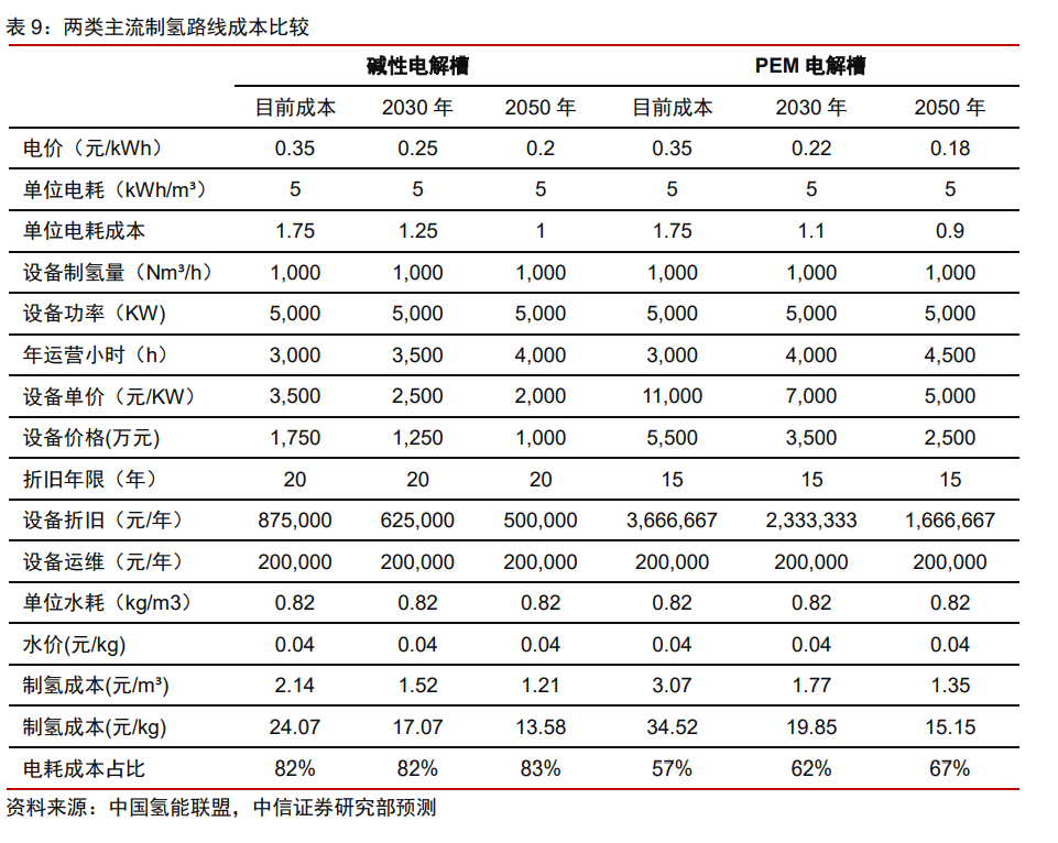 我們判斷至2030年,行業(yè)平均的用電成本可以降至0.25元/kwh,實(shí)現(xiàn)與化石能源制氫成本的平價(jià)。