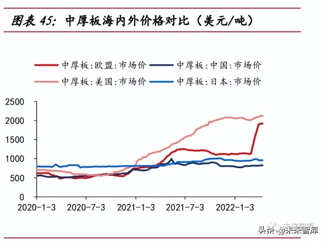 樁基無(wú)反傾銷稅限制,歐洲企業(yè)競(jìng)爭(zhēng)力有限?,F(xiàn)階段樁基無(wú)反傾銷稅限制,參考 塔筒反傾銷稅的調(diào)查周期(約 10 年),未來(lái) 10 年有望成為樁基環(huán)節(jié)的出口黃金期。競(jìng)爭(zhēng)對(duì)手方面,歐洲本土供應(yīng)商的產(chǎn)能落后,歐洲本土樁基供應(yīng)商產(chǎn)能有限,SIF、 EEW等四家主流供應(yīng)商的年設(shè)計(jì)產(chǎn)能之和不足 600 根,且50%的產(chǎn)品直徑小于11米, 在歐洲風(fēng)機(jī)大型化趨勢(shì)下,已難滿足大噸重以及大直徑的產(chǎn)品要求。塔筒出口受反傾銷稅影響。較低的反傾銷稅率能使國(guó)內(nèi)塔筒企業(yè)在海外市場(chǎng)中擁 有更強(qiáng)的議價(jià)能力。現(xiàn)階段,大金重工在歐盟地區(qū)的反傾銷稅最低為 7.2%,泰勝風(fēng)能 在澳洲地區(qū)的反傾銷稅為零,出口優(yōu)勢(shì)明顯。原材料價(jià)低造就競(jìng)爭(zhēng)力。原材料價(jià)格方面,塔筒原材料主要有中厚板、法蘭等, 中厚板占原材料成本的占在 80%以上, 2022 年俄烏沖突,歐洲中厚板價(jià)格一度是我 國(guó)中厚板價(jià)格的兩倍,我國(guó)中厚板市場(chǎng)價(jià)長(zhǎng)期低于國(guó)際市場(chǎng),促使我國(guó)塔筒企業(yè)利潤(rùn) 率高于海外企業(yè)。