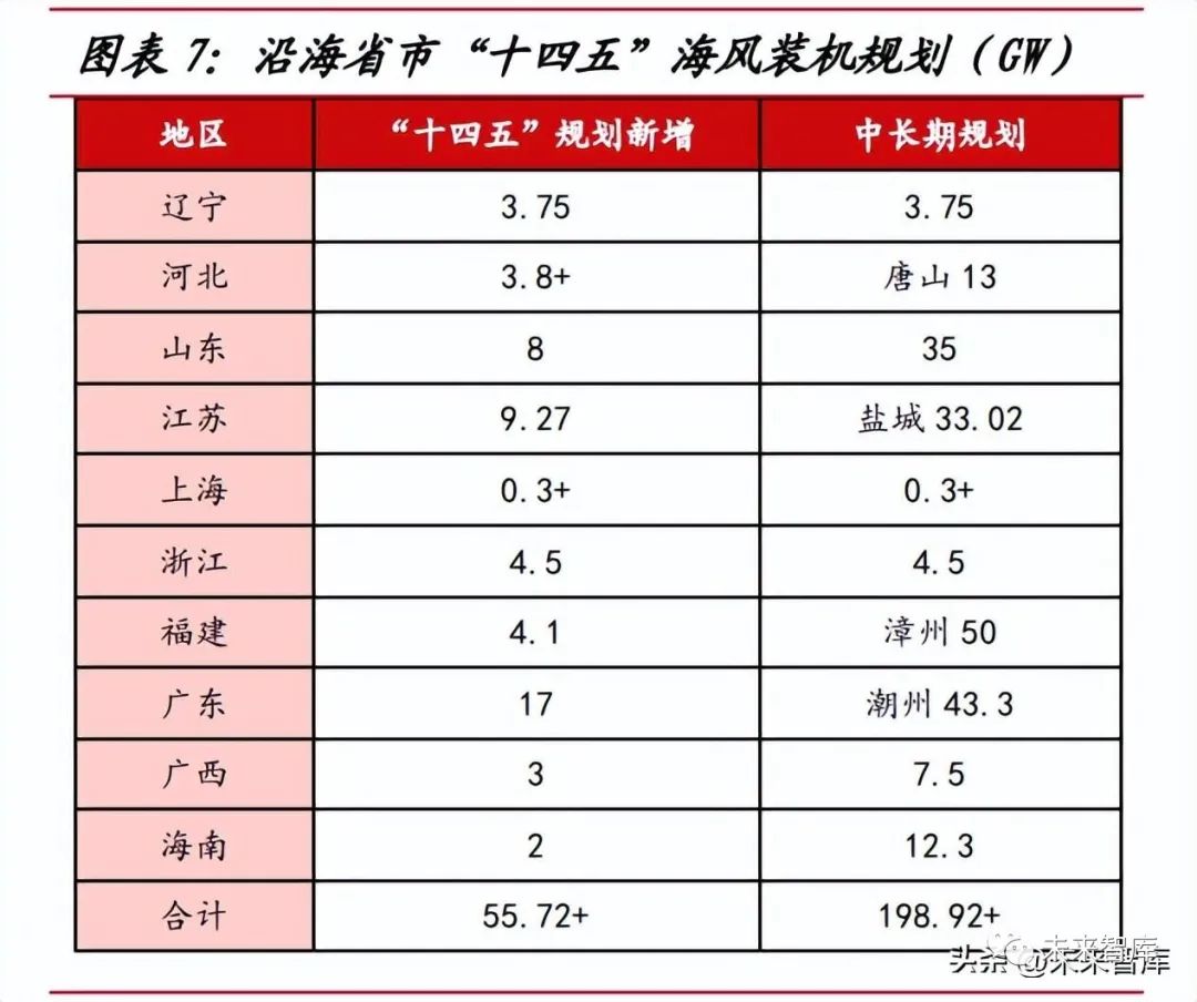 “十四五”規(guī)劃充沛,中長(zhǎng)期發(fā)展可期。截至 2022 年,我國(guó)沿海省市已發(fā) 布“十四五”海上風(fēng)電發(fā)展規(guī)劃,整體規(guī)劃新增裝機(jī)規(guī)模有望突破 55GW,2021- 22 年我國(guó)海風(fēng)新增裝機(jī)約 21GW,對(duì)應(yīng) 2023-25 年裝機(jī)規(guī)模約 34GW??紤]到部 分地區(qū)相關(guān)海風(fēng)項(xiàng)目已實(shí)現(xiàn)平價(jià)上網(wǎng),海風(fēng)降本超預(yù)期,再結(jié)合廣東、山東、浙江 等地區(qū)已出臺(tái)地補(bǔ)政策支持海風(fēng)建設(shè),我們預(yù)計(jì)海風(fēng)需求以及新增裝機(jī)或超過(guò)沿海 地區(qū)規(guī)劃規(guī)模,中性假設(shè)條件下,2023-25 年我國(guó)海風(fēng)新增裝機(jī)規(guī)模有望超 40GW, 2023 年在行業(yè)充沛的招標(biāo)量下,新增裝機(jī)規(guī)模有望達(dá) 10GW,同比實(shí)現(xiàn)翻倍增長(zhǎng)。根據(jù)風(fēng)芒能源統(tǒng)計(jì),我國(guó)已出臺(tái)的海上風(fēng)電規(guī)劃體量接近 200GW,中長(zhǎng)期發(fā)展空 間廣闊。