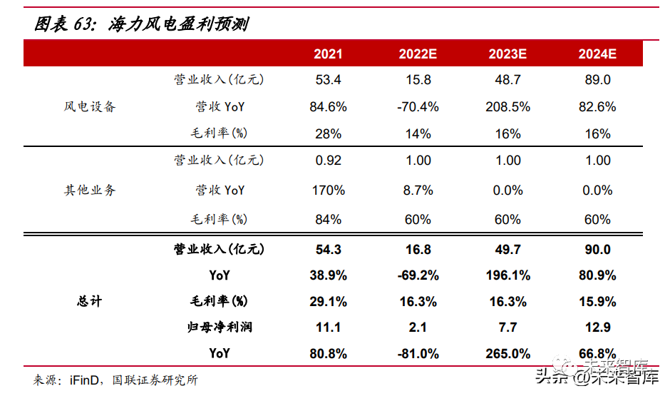 風(fēng)電鑄件量利齊升,齒輪箱零部件放量在即。受益于產(chǎn)能擴(kuò)產(chǎn),以及海風(fēng)裝機(jī) 需求回暖,公司風(fēng)電鑄件的海風(fēng)出貨占比有望提升,再疊加原材料價(jià)格回落,公司 風(fēng)電鑄件業(yè)務(wù)盈利能力有望修復(fù),預(yù)計(jì) 2022-23 年公司風(fēng)電鑄件出貨 5/10 萬(wàn)噸;公司的風(fēng)電齒輪箱零部件設(shè)備已經(jīng)與客戶進(jìn)行小批量產(chǎn)品試制,預(yù)計(jì) 2023-24 年 齒輪箱零部件業(yè)務(wù)出貨 2/4 萬(wàn)噸。我們預(yù)計(jì) 2022-24 年公司歸母凈利潤(rùn)分別為 1.31/3.73/6.31 億元,同比25.69%/185.06%/69.03%;EPS 分別為 0.61/1.74/2.94 元/股。