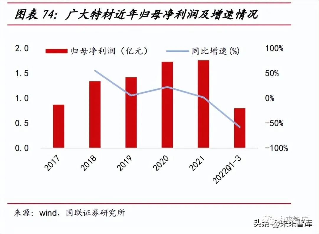 廣大特材于 2006 年成立,主營(yíng)業(yè)務(wù)為高端特鋼材料和風(fēng)電零部件。公司于 2019 年近進(jìn)軍風(fēng)電鑄件業(yè)務(wù),截至 2022 年擁有大兆瓦風(fēng)電鑄件產(chǎn)能 10-12 萬(wàn)噸, 2023 年中期將形成 20 萬(wàn)噸大兆瓦風(fēng)電鑄件產(chǎn)能。2022 年 10 月公司可轉(zhuǎn)債項(xiàng)目 獲證監(jiān)會(huì)批準(zhǔn),擬投資 11.5 億元建設(shè) 8.4 萬(wàn)件風(fēng)電齒輪箱核心精密零部件產(chǎn)能。2022 年前三季度公司營(yíng)業(yè)收入同比有所上升 21.85%,但由于風(fēng)電行業(yè)總體 需求減弱,再結(jié)合疫情反復(fù)、鋼材價(jià)格總體維持高位,前三季度歸母凈利潤(rùn)同比下 降 57.91%。