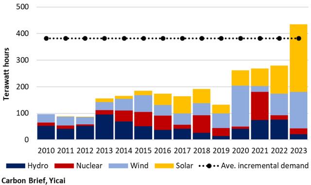 除了太陽能和風(fēng)能發(fā)電能力的大幅提升,碳簡報認(rèn)為,中國的發(fā)電能力將受益于水電的回升。熱浪和干旱在2022年8月和今年7月降低了水力發(fā)電量,但這些因素未來一段時間內(nèi)不會再困擾水電。有跡象表明,水庫水位已升至歷史平均水平,且目前的厄爾尼諾周期表明,直到明年2月份,降雨量都將高于平均水平。此外,2022年初至2023年9月,水電裝機(jī)容量增加了7%,這將進(jìn)一步提高這種綠色能源對于滿足中國能源需求的貢獻(xiàn)。