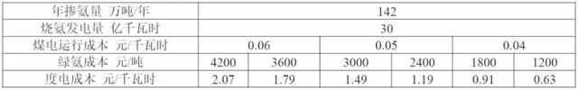 假設實現(xiàn)約50%的摻氨比例,經計算每年需氨量約1000萬噸,制氨用電量約900億千瓦時。則制氨所需風電裝機約1500萬千瓦、光伏裝機約2900萬千瓦、制氫+合成氨裝置約2250萬千瓦,建設管道5條,預計設備總投資為2650億元。經測算火電摻燒氨帶來的全社會用電成本上升約0.031元/千瓦時。