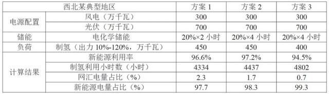 上述計算表明采用制氫作為柔性負荷是一種可行的新能源基地消納解決方案。得益于電解水制氫的柔性負荷對波動性電源的適應性,在三種不同的方案中,棄電率均低于6%,這與傳統(tǒng)的新能源大基地10%~15%左右的棄電率相比,新能源的利用率有了明顯的提高。