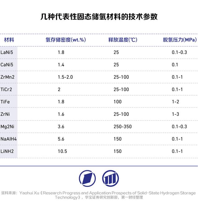 固態(tài)儲(chǔ)氫是近年來的新亮點(diǎn),分為物理吸附儲(chǔ)氫和化學(xué)儲(chǔ)氫兩種路線。物理吸附儲(chǔ)氫是指通過范德華力將氫氣分子吸附在固體表面,儲(chǔ)氫材料包括碳基材料、無機(jī)多孔材料和金屬有機(jī)骨架化合物等,其缺點(diǎn)主要在于大多數(shù)物理吸附類材料在較低的溫度下才能達(dá)到一定的儲(chǔ)氫密度,常溫常壓下吸氫量很低?;瘜W(xué)儲(chǔ)氫材料主要包括金屬氫化物、配位氫化物、化學(xué)氫化物等。其中,金屬氫化物因其高氫儲(chǔ)存容量和良好的循環(huán)穩(wěn)定性而成為研究重點(diǎn)。固態(tài)儲(chǔ)氫可在接近常溫常壓的環(huán)境中完成儲(chǔ)放,兼具體積儲(chǔ)氫密度高、可逆性、循環(huán)壽命高、安全性好、供氫純度高等優(yōu)點(diǎn),應(yīng)用前景為市場(chǎng)所看好。