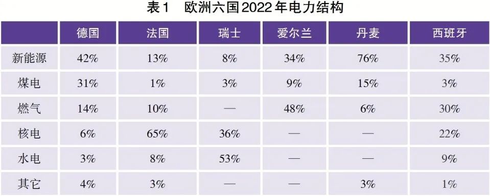 負(fù)電價(jià)主要在風(fēng)電和光伏發(fā)電高峰期出現(xiàn)。盡管發(fā)電總量已經(jīng)過(guò)剩,并引起了負(fù)電價(jià)現(xiàn)象,許多電廠仍然在持續(xù)發(fā)電,但背后的原因是多種多樣的。主要涉及三個(gè)關(guān)鍵因素:首先,電廠的應(yīng)變能力有限,難以適應(yīng)可再生能源的波動(dòng)性,還與能源結(jié)構(gòu)和電網(wǎng)結(jié)構(gòu)相關(guān)。其次,為了保持電網(wǎng)穩(wěn)定,調(diào)頻備用電廠不能輕易中止運(yùn)行,反映了電廠應(yīng)變能力方面的短板。最后,可再生能源的補(bǔ)貼政策未能精準(zhǔn)契合市場(chǎng)需求,這既涉及到需求層面,也與政策適應(yīng)性相關(guān)。從某種程度上來(lái)說(shuō),都或多或少地與發(fā)電機(jī)組和政策機(jī)制的靈活性相關(guān)。負(fù)電價(jià)的表現(xiàn)因各國(guó)情況而異,但均與各國(guó)的能源結(jié)構(gòu)和電網(wǎng)結(jié)構(gòu)及其演變有密切的聯(lián)系。(歐洲各國(guó)電力結(jié)構(gòu)見(jiàn)表1)