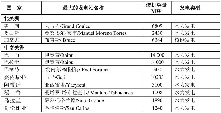“世界各國最大的發(fā)電站”只是指最大的,可以看見最大最多的發(fā)電站最多的仍然是水力發(fā)電,其次為核能發(fā)電、燃煤發(fā)電;也有燃氣發(fā)電。根據各國的資源不同,最大的發(fā)電站也有特色,如中南美洲以水力發(fā)電為主,亞太地區(qū)的水力發(fā)電也很發(fā)達。