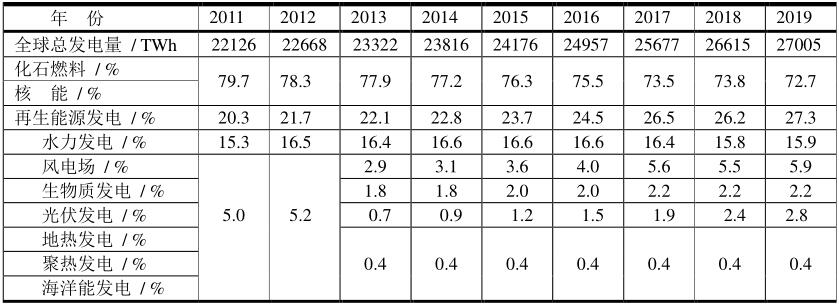 2011~2019年全球電力結構匯總