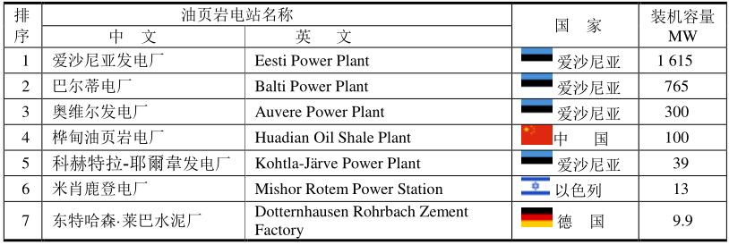 表中油頁巖電站所使用的燃料不是頁巖油,而是油頁巖。