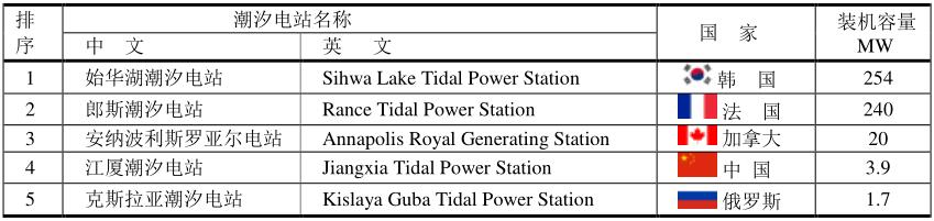 世界上最大的潮汐電站是韓國始華湖潮汐電站(Sihwa Lake Tidal Power Station),裝機容量為254MW。中國最大的潮汐電站是江廈潮汐電站(Jiangxia Tidal Power Station ),裝機容量僅為3.9MW。